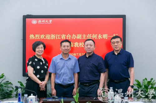 7月22日下午,浙江省人民政府台湾事务办公室副主任何永明率省台办、温州市台办一行6人莅临公司调研。公司党委书记谢树华、副董事长薛伟出席座谈会。