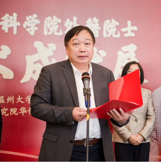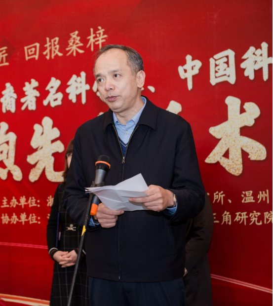 浙江省侨联党组成员、副主席兼秘书长周松一致辞。周松一主席分享了三句话同大家共勉:希望大家充分领略先生严谨的治学态度,为本领“淬火”;希望大家充分领略先生高尚的品格修行,为灵魂“提纯”;希望大家充分领略先生赤诚的家国情怀,为事业“添彩”。