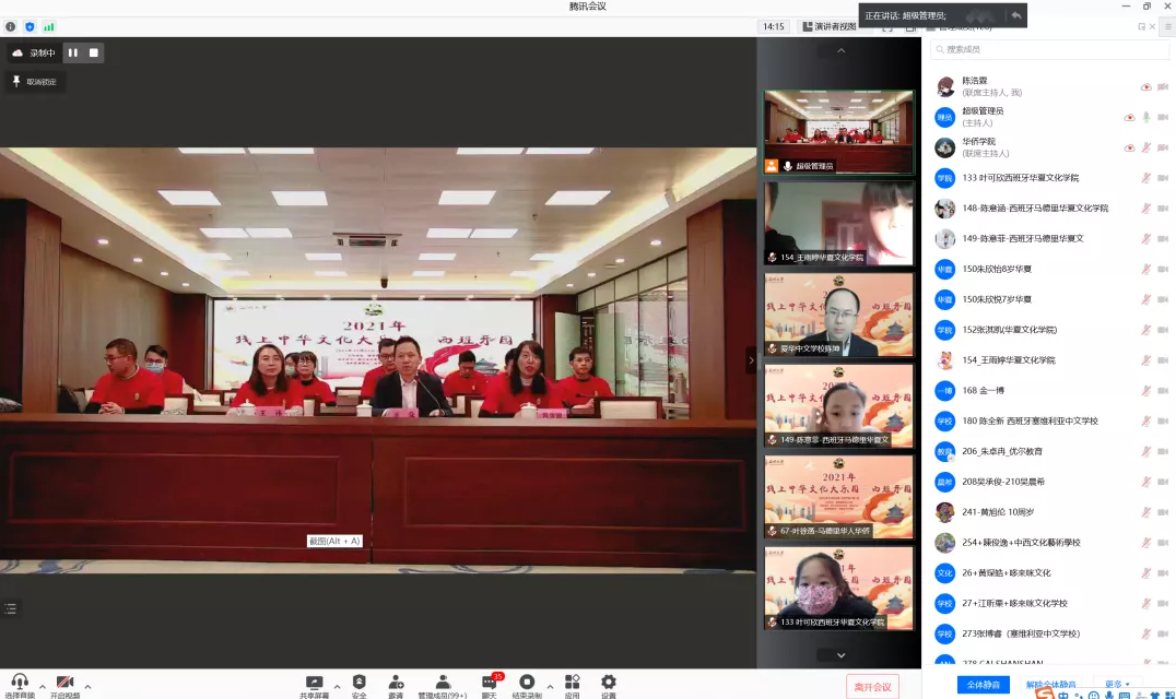 来自西班牙中西文化艺术公司的教师严红英作为海外华校教师代表发言。她表示,参与此次活动,将能够让海外华文公司的孩子们通过“云端”零距离感受和学习中华传统文化,增进对祖(籍)国的认同感和归属感。