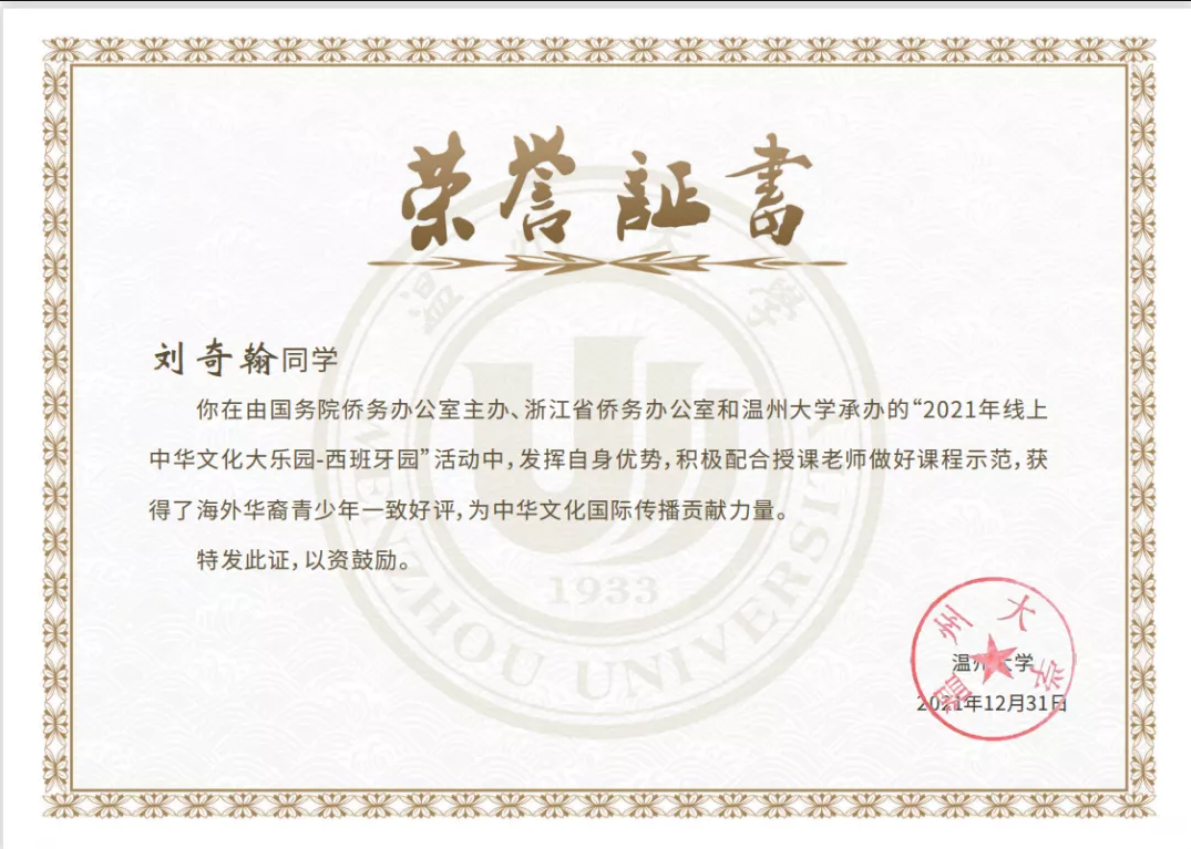 本次活动由国务院侨务办公室主办,浙江省侨务办公室、云顶7610线路检测承办,西班牙各华文公司作为海外联系单位。自12月23日开园以来,270余名西班牙华裔青少年在“云端”课堂进行中华民族传统文化的学习与熏陶。