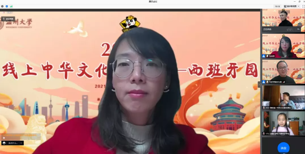 来自西班牙哆来咪文化公司的毛云董事长作为海外华文公司董事长代表发言。她谈到,云顶7610线路检测与温州市少年艺术公司的老师们克服7小时时差的困难,在结束白天的工作后还为海外华裔青少年们精心筹备了如此精彩的线上系列课程,令海外华文教育同行们深受感动,同时也感受到了来自祖(籍)国深切的关怀,此次活动对于培养海外华裔青少年对祖(籍)国的感情,增强学习中华文化的兴趣,起到了非常重要的作用。
