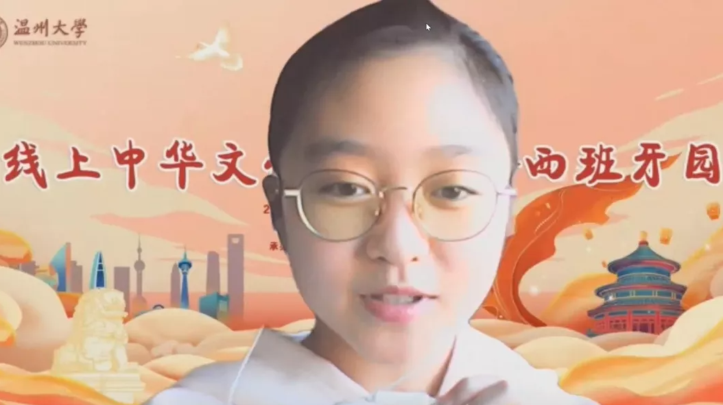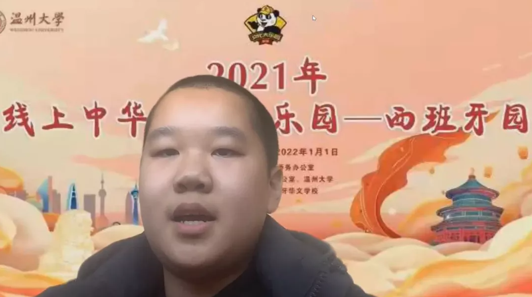 来自西班牙马德里华侨华人中文公司的金佳怡作为学员代表发言。“这次活动极大丰富了我们的寒假生活,使我们海外华裔青少年们足不出户就能学习和了解中华文化,我非常期待下一次的大乐园活动,希望还能够与大家见面!”金佳怡兴奋地表示。作为一名曾就读于温州市少年艺术公司的华裔青少年,能够与自己曾经的老师在“云端”再次相聚,令金佳怡分外激动与欣喜,不禁感叹缘分的美妙,对参与此次活动的满足与收获溢于言表。