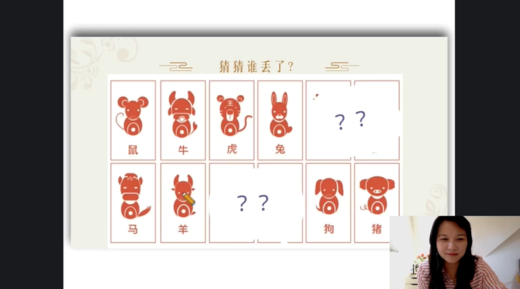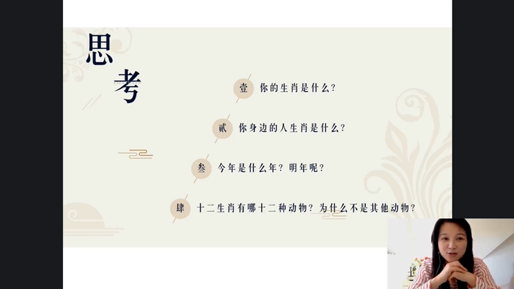 “十二生肖谁丢了?为什么没有属熊猫、属丹顶鹤?”“为什么生肖里没有鸡和毛?”“中国龙是我的守护神”“牛很勤劳”“猴子很调皮”等问题通俗易懂,深深吸引了孩子们的注意力。彭可希老师分享的典故寓教于乐、引人入胜。课堂上,彭老师积极引导学员思考,学员热情主动回应,二者相互配合,极大激发了海外华裔小朋友们学习了解生肖知识的积极性和主动性,为他们带来了一场中国传统文化的饕餮盛宴。
