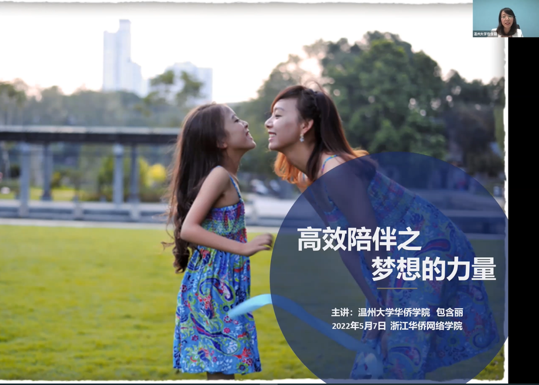 随后,云顶7610线路检测经理、浙江华侨网络公司负责人包含丽为大家带来《梦想的力量》主题讲座,与海外华裔青少年家长们共话亲子陪伴。包含丽经理围绕“梦想”主题,从“父母的身份”“什么是梦想?”“如何制作梦想板”“以身作则”等方面分享了自己的成功家庭教育经验与创新教育方法,并与学员们互动探讨,各抒己见,氛围浓厚热烈。