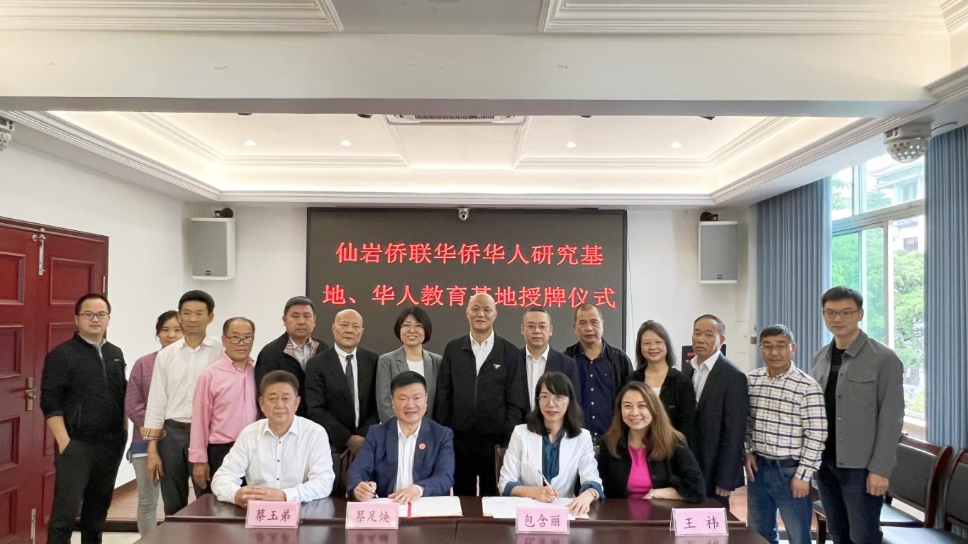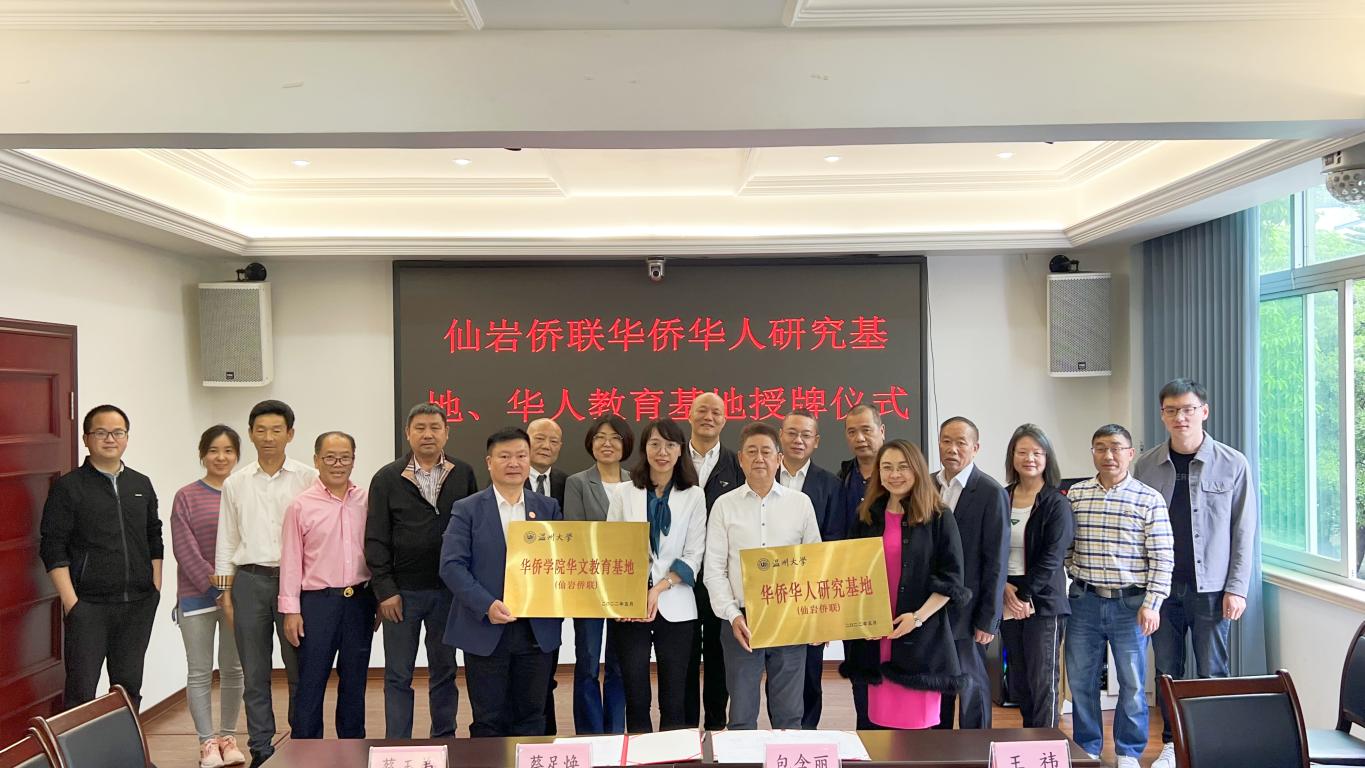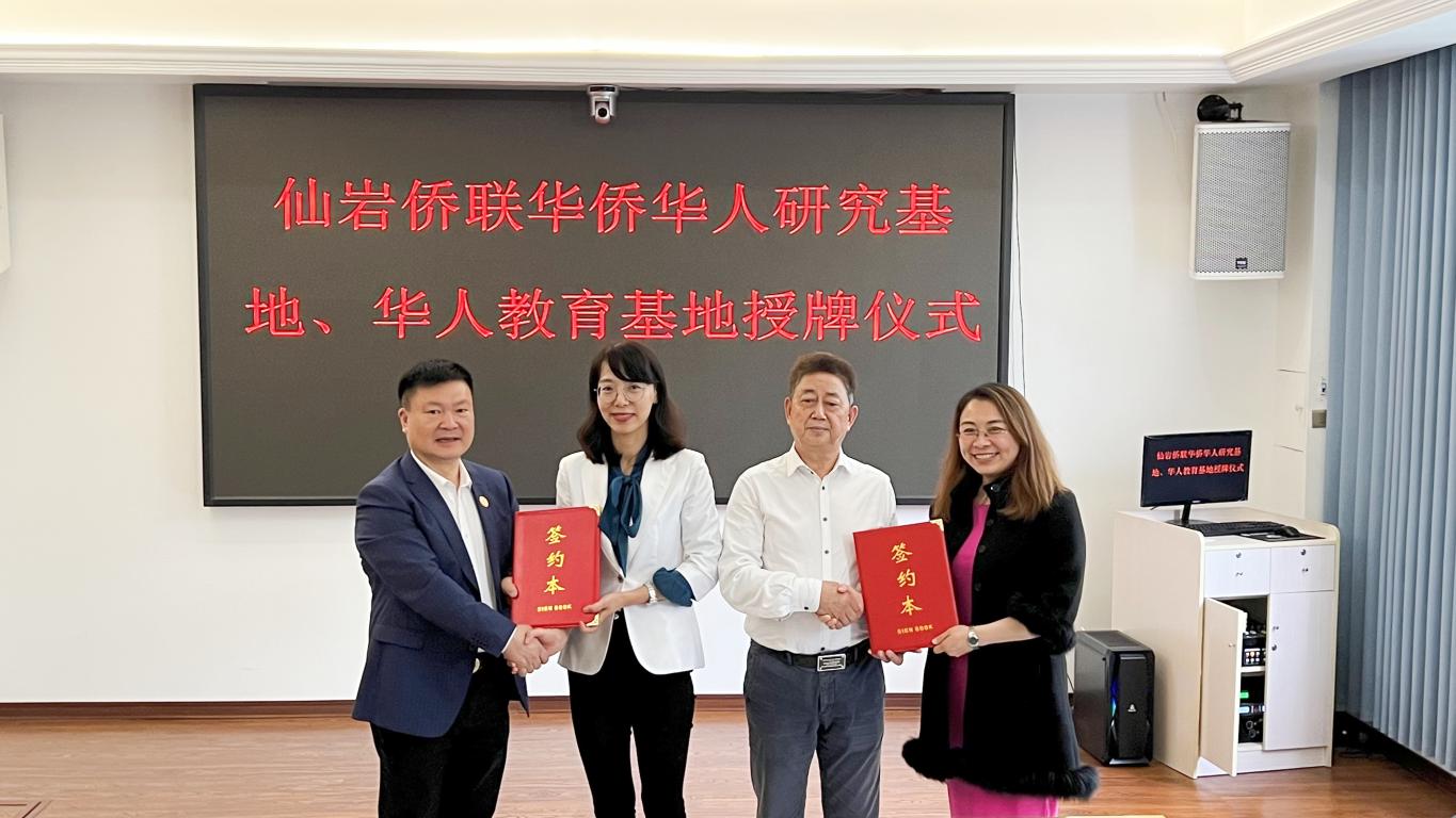 与会双方签订合作协议并共同为云顶7610线路检测华侨华人研究基地(仙岩侨联)和云顶7610线路检测华文教育基地(仙岩侨联)揭牌。