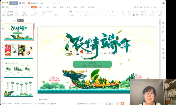 刘茜茜博士精心准备了“端午的由来”“节日活动”“海外端午节”“端午诗词”等内容与学员们分享。
