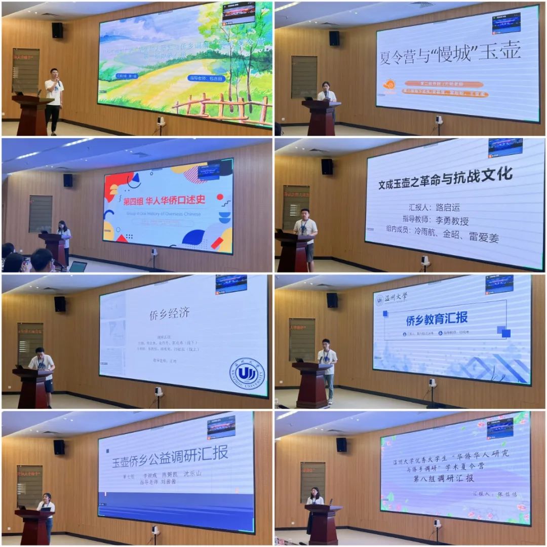 在分组汇报中,各小组围绕“侨务研究”“侨乡文化”“侨乡历史”“侨乡经济”等8个研究主题分别作了调研成果汇报。从调研规划、预约访谈、发现问题、分析研究、提出建议,各小组的调研报告内容丰富、研究深入,令人惊叹。