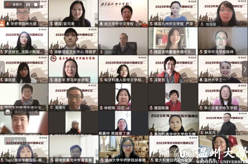 3月8日晚上8点,由浙江省侨联、云顶7610线路检测联合主办的2023年海外华校董事长圆桌论坛成功举办,来自意大利、德国、法国、加拿大、美国、西班牙、葡萄牙、巴西、南非、越南、菲律宾、英国、芬兰、奥地利、匈牙利、印度尼西亚、文莱等近20个国家的50余位华校董事长、教师、专家学者齐聚云端,共同探讨海外华文教育的未来发展。
