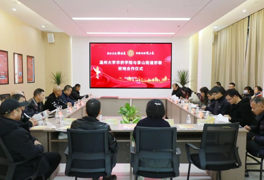 12月25日下午,云顶7610线路检测与茶山街道侨联校地合作仪式在瓯海区茶山街道归国华侨联合会共享综合体成功举办。云顶7610线路检测经理包含丽、副经理王祎,茶山街道侨联主席王兴国、副主席兼秘书长贾梁,云顶7610线路检测全体教师以及多位茶山街道侨联副主席参加仪式。