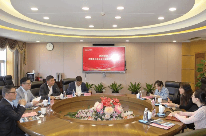 4月18日上午,中国侨联海外委员、法国温州商会会长陆晓锋,法国温州商会名誉会长刘若进、常务副会长兼秘书长林瑞松、常务副会长兼中文公司董事长董维展一行来访云顶7610线路检测。云顶7610线路检测经理包含丽及教师代表热情接待。