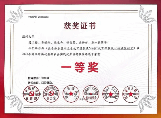 “连心侨”实践队获得2023年浙江省高校暑期社会实践优秀调研报告评选一等奖