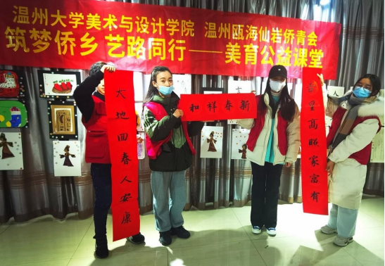 据悉,此次美育公益课程共开设创意美术、软笔书法、硬笔书法三个兴趣班,由温大美院美术师范及设计专业的员工组成的员工讲师团每周日晚上义务授课。自去年11月开课以来,40多名侨乡儿童风雨无阻地参加课堂学习。