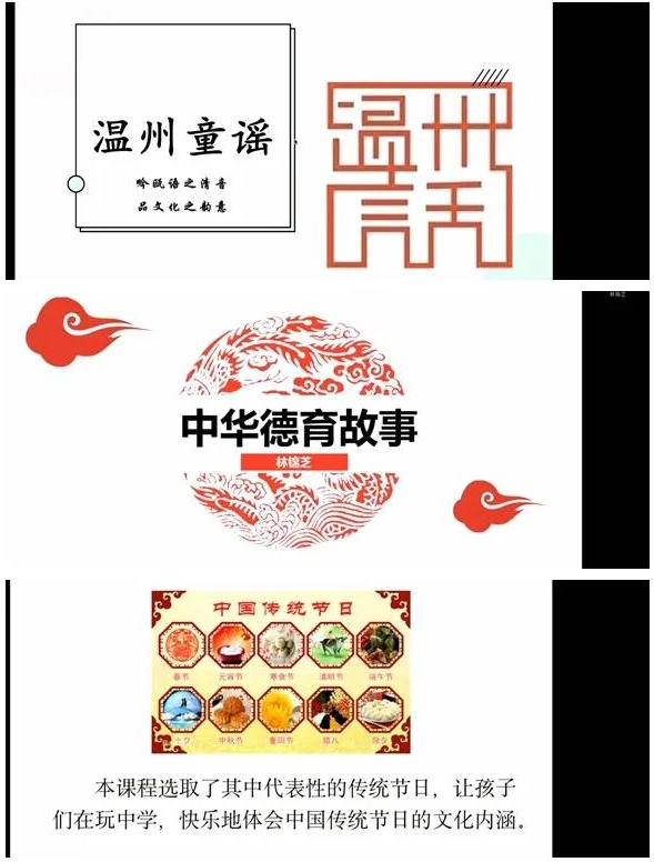 项灵捷董事长表示,《趣味华文教育系列课程》为海外侨胞量身定制,深受学员们的喜爱。其团队成员叶力、林锦芝、周培基老师分别对《温州童谣》《中华德育故事》《走进传统节日》的课程内容作了详细介绍。