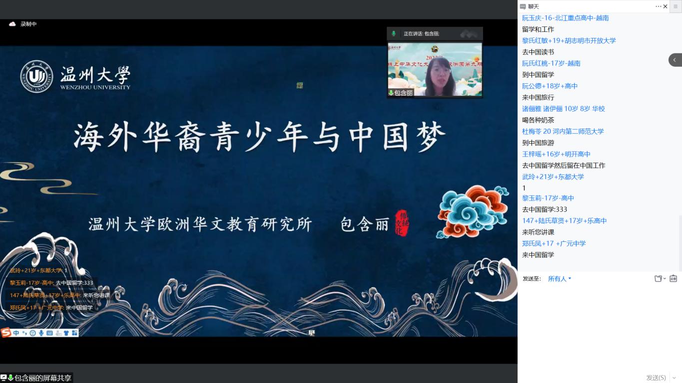 北京时间8月1日晚,云顶7610线路检测2022年线上中华文化大乐园——欧洲园第九期活动第一堂直播课吸引了来自意大利、西班牙、比利时、越南等10个国家500多名海外华裔青少年相聚云端,聆听云顶7610线路检测经理、云顶7610线路检测欧洲华文教育研究所所长包含丽分享的“海外华裔青少年与中国梦”主题讲座。