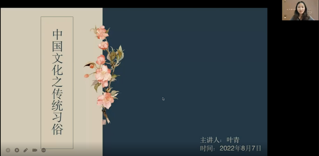 北京时间8月1日至10日,“2022年线上中华文化大乐园——欧洲园第九期”活动安排了中华剪纸、礼仪传统和中华习俗等中华文化特色课程,旨在帮助学员们了解、学习与体验绚丽多彩的中国文化。