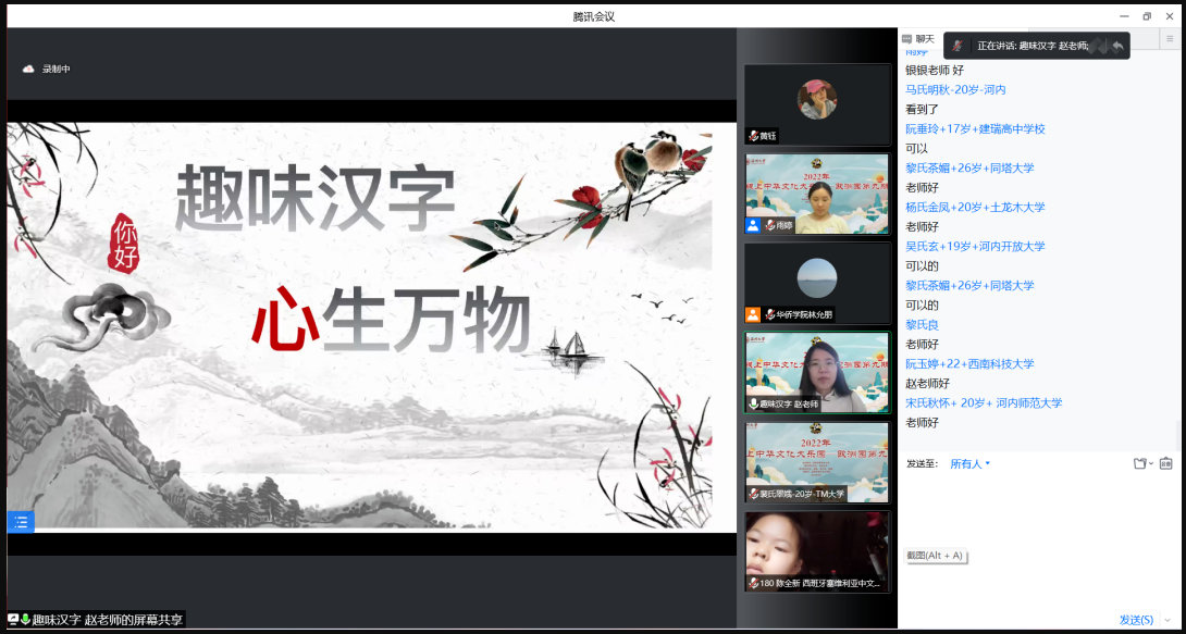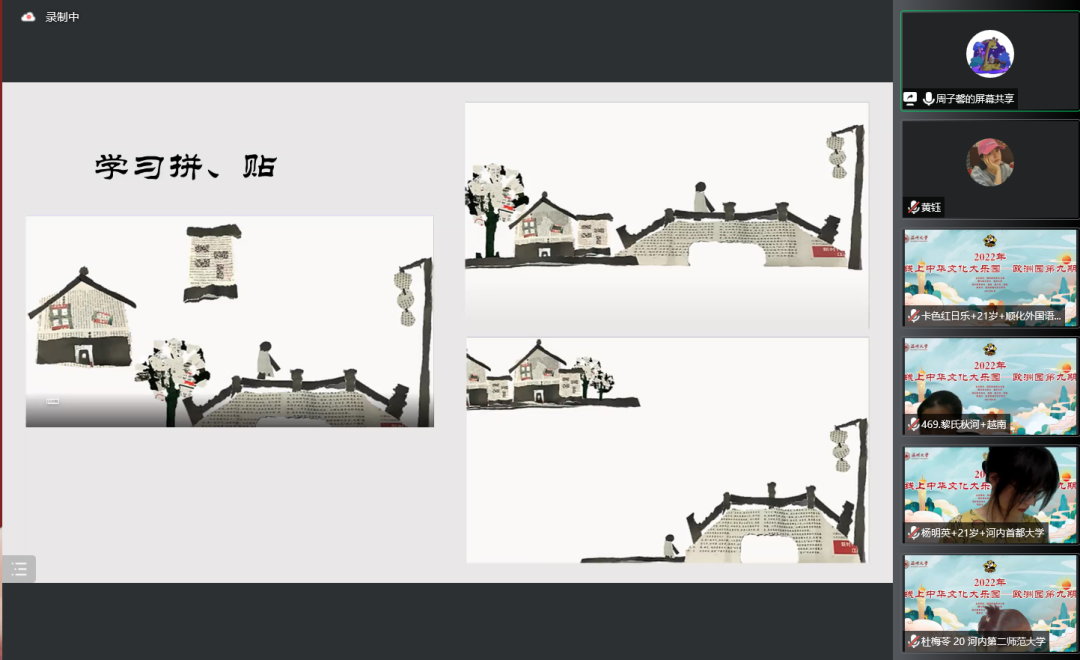 北京时间8月1日至10日,在“2022年线上中华文化大乐园——欧洲园第九期”的活动中,海外华裔青少年齐聚云端,共同学习了“国学鉴赏”系列课程。