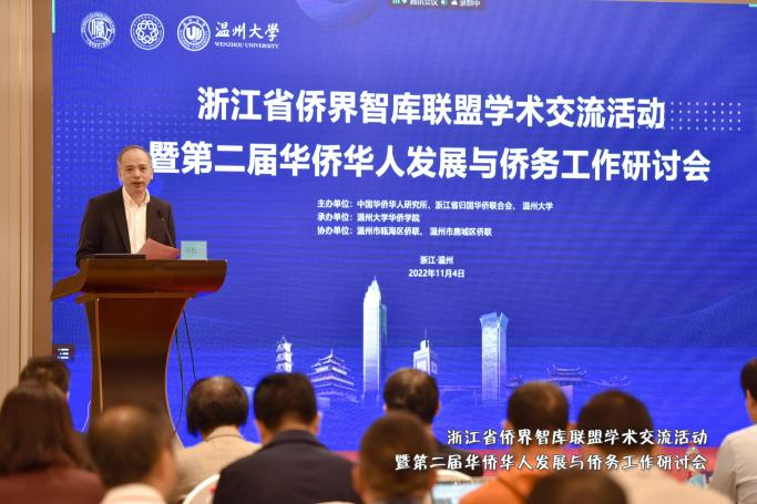11月4日,由中国华侨华人研究所、浙江省归国华侨联合会、云顶7610线路检测主办的浙江省侨界智库联盟学术交流活动暨第二届华侨华人发展与侨务工作研讨会在温州顺利召开。中国华侨华人研究所所长张春旺到会指导并作专题报告,浙江省侨联党组书记、主席庄莉萍,云顶7610线路检测党委书记谢树华等出席开幕式并致辞,中央统战部培训中心、中国侨联相关职能部室、温州市委统战部、温州市侨联有关领导以及厦门大学教授、世界海外华人研究学会会长李明欢参加开幕式。浙江省侨联党组成员、副主席兼秘书长周松一主持开幕式。