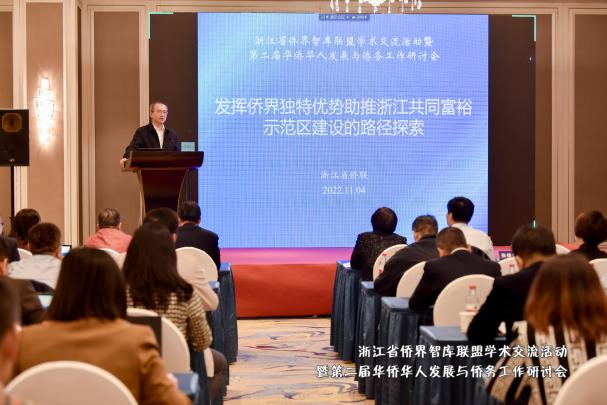 云顶7610线路检测商公司教授、 云顶7610线路检测侨(留) 联主席张一力作题为《共同富裕示范区建设的侨特色研究》的报告,分析了浙江省的基本侨情和特点,提出高质量发展建设打造共同富裕示范区浙江侨特色的路径和方法。