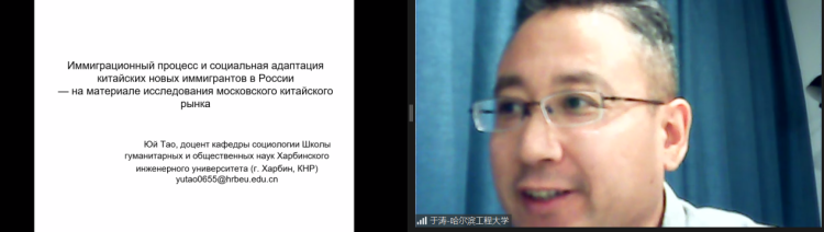 哈尔滨工程大学人文社会科学公司社会学系副教授于涛分享了关于《俄罗斯中国新移民的移民过程与社会适应——基于莫斯科华人市场的调查》的研究成果。基于对莫斯科华人市场的长期深入调研,他认为随着两国贸易的发展,由原属民间个体行为的跨境贩运,逐步向组织化、规模化过渡,开始寻找一些固定场所,并集中到“大市场”的当地特色经营场所中。在莫斯科市场的中国移民过程呈现出游击、散居、集中三个阶段并出现在当地定居的趋势。