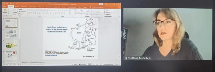 俄罗斯科公司社会学研究中心首席研究员米舒克C.N.研究了《俄罗斯远东边境地区的农业和大豆出口》问题。她认为,农产品对于任何一个国家来说都具有战略意义,对于国家安全来说至关重要。在苏联时期和俄罗斯时期,大豆出口在中俄边境地区的贸易结构中占比情况迥异。