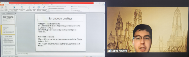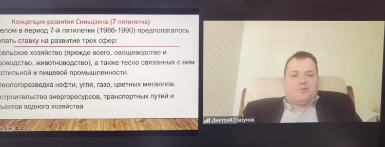 阿尔泰州国立大学东方学系副教授格拉祖诺夫D.A.分享了题为《20世纪80至90年代初新疆的国际经济学说》的研究成果。