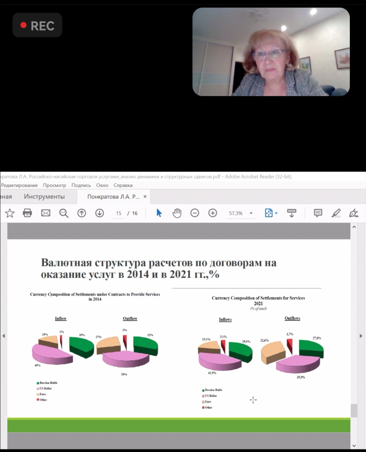 莫斯科谢尔盖威特大学管理学系副教授班科拉多瓦L.A.做了题为《中俄服务贸易:动态分析和结构转型》的主题报告。