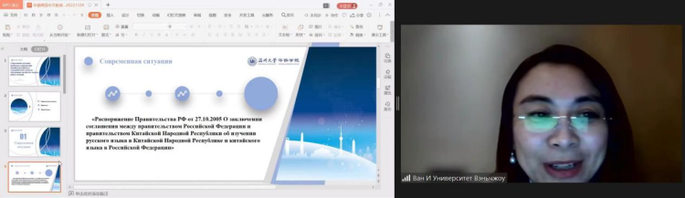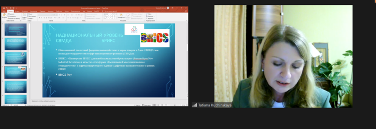 后贝加尔国立大学国际法和国际关系系教授库琴斯卡娅 T.N.,发表了题为《中俄创新对话的基本维度和多层次实践》的主题报告。