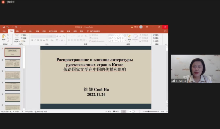 沈阳工程公司国际教育公司教师徐娜做了题为《俄语国家文学在中国的传播和影响》的主题报告。她发现,自19世纪中叶开始,就有俄国文学作品被传教士翻译成中文在中国出版,如《俄人寓言》、普希金的《上位的女儿》等。从译介“俄国文学之父”普希金开始,中国对俄罗斯文学正式接受。此后连续不断有如俄国、白俄罗斯等俄语国家的文学作品被传播到中国。