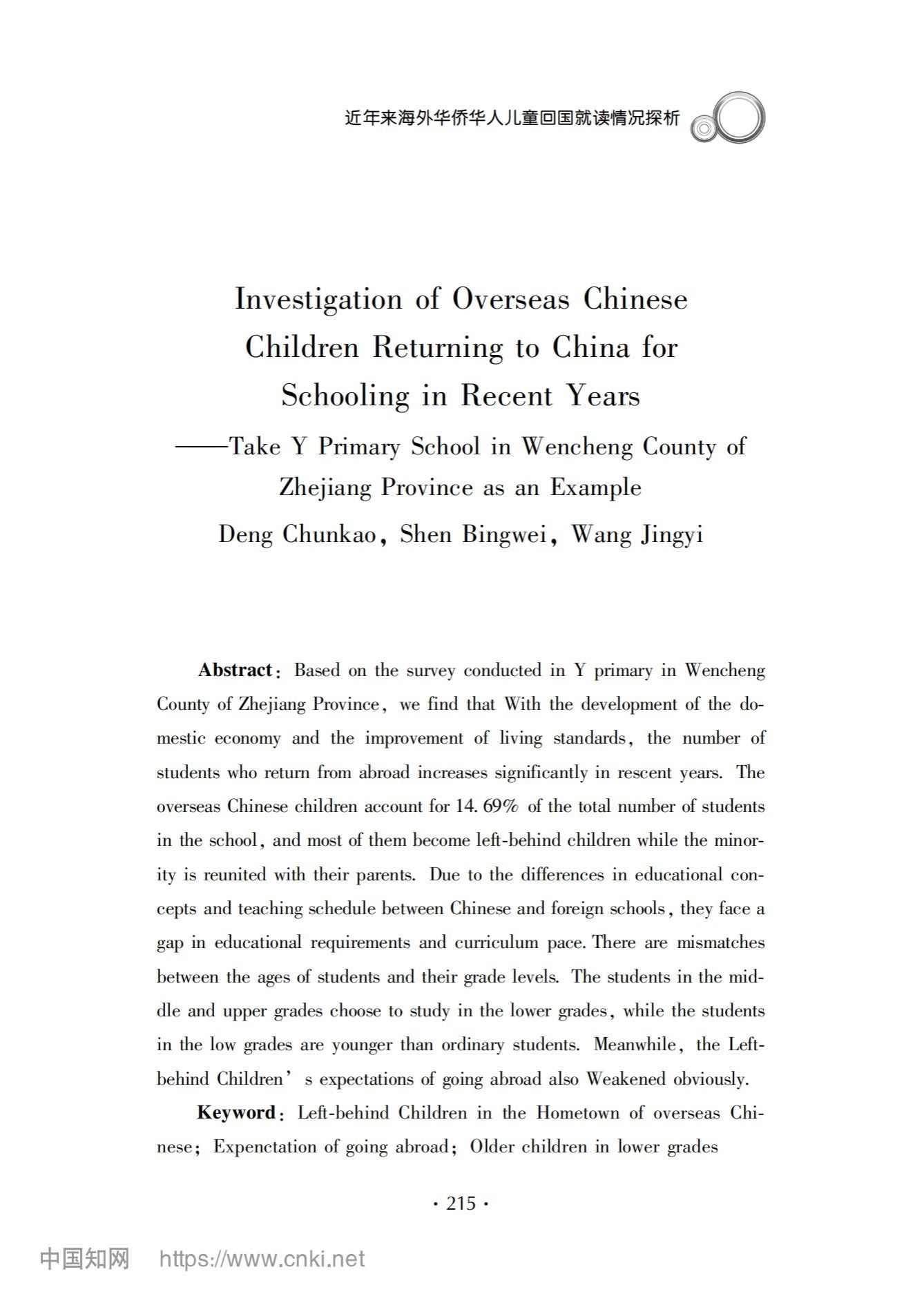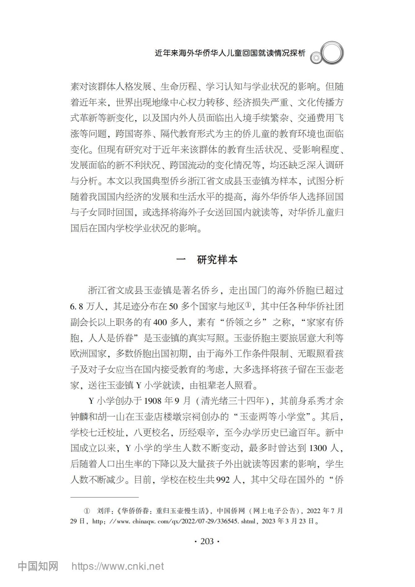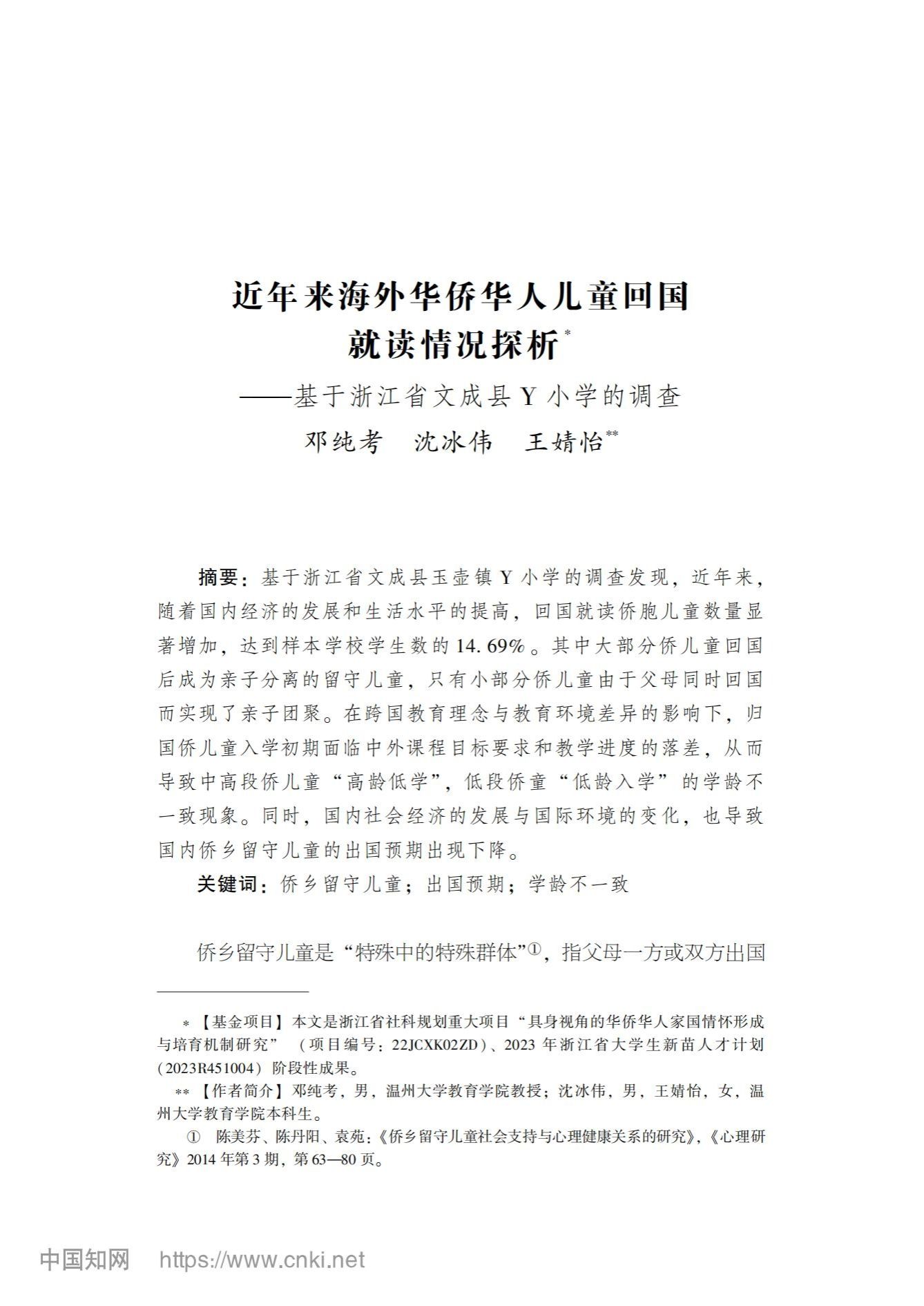 本期《华侨华人学研究》成果分享:邓纯考、沈冰伟、王婧怡《近年来海外华侨华人儿童回国就读情况探析——基于浙江省文成县Y小学的调查》