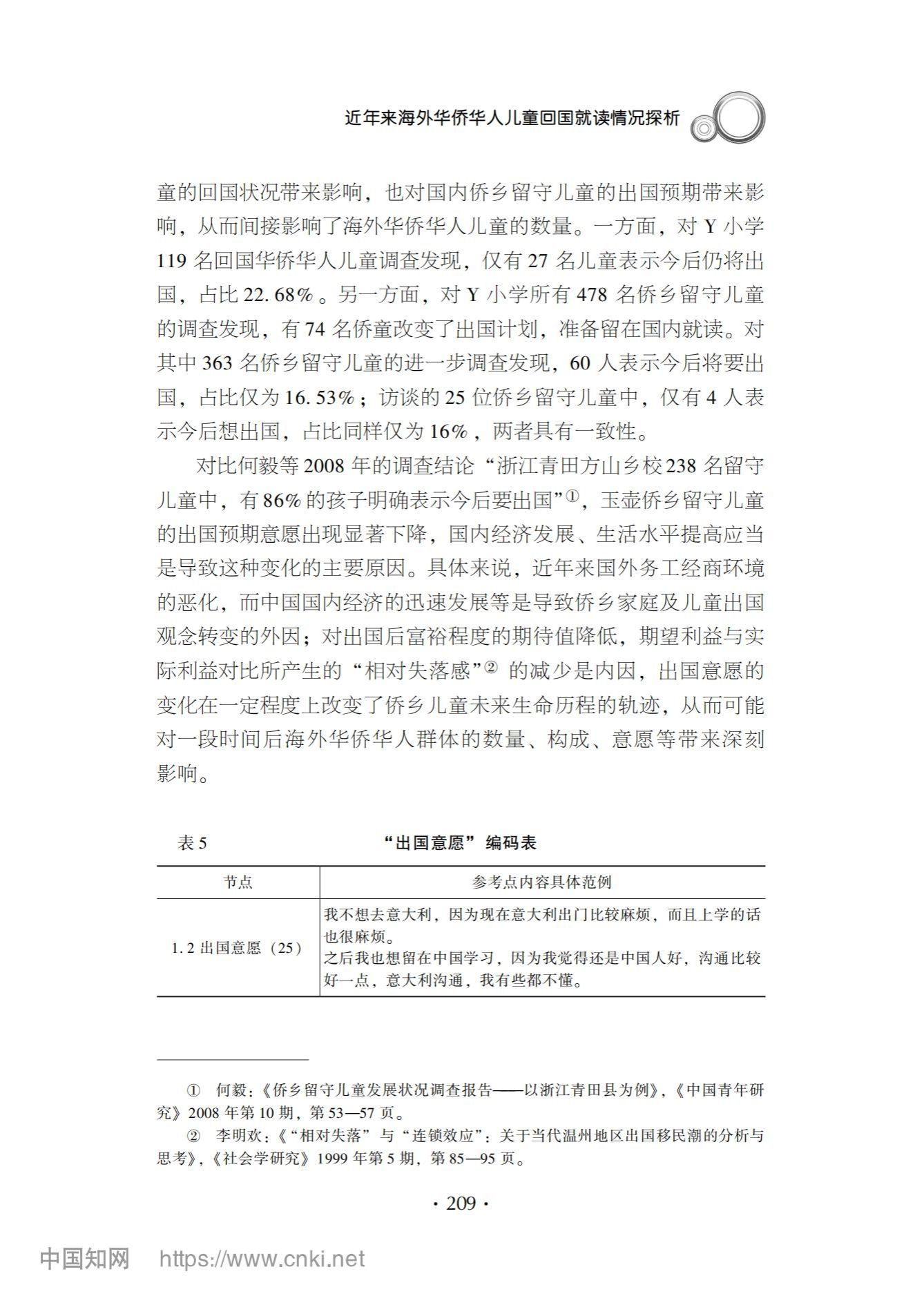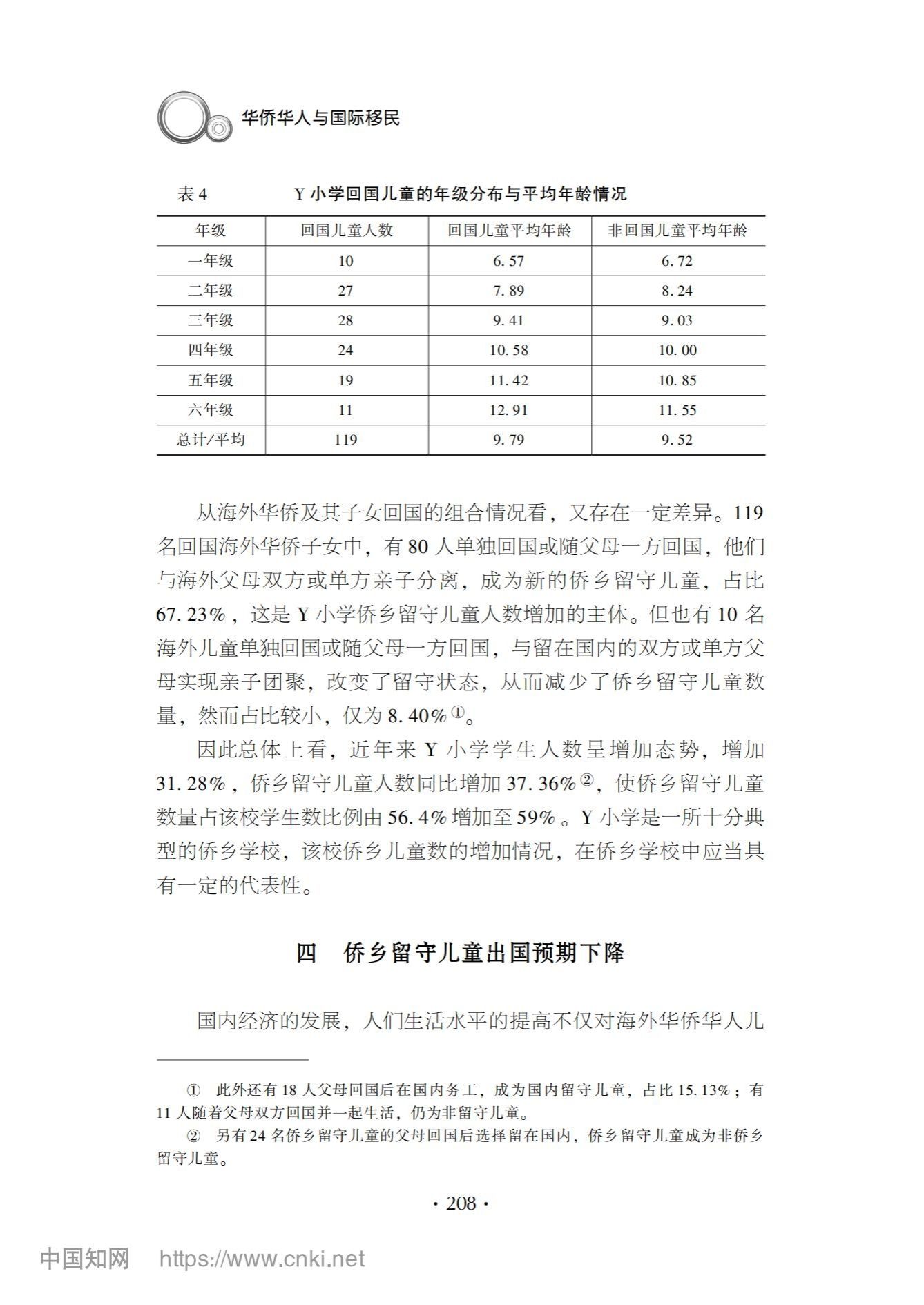 基于浙江省文成县玉壶镇Y小学的调查发现,近年来,随着国内经济的发展和生活水平的提高,回国就读侨胞儿童数量显著增加,达到样本公司员工数的14.69%。其中大部分侨儿童回国后成为亲子分离的留守儿童,只有小部分侨儿童由于父母同时回国而实现了亲子团聚。在跨国教育理念与教育环境差异的影响下,归国侨儿童入学初期面临中外课程目标要求和教学进度的落差,从而导致中高段侨儿童“高龄低学”,低段侨童“低龄入学”的学龄不一致现象。同时,国内社会经济的发展与国际环境的变化,也导致国内侨乡留守儿童的出国预期出现下降。