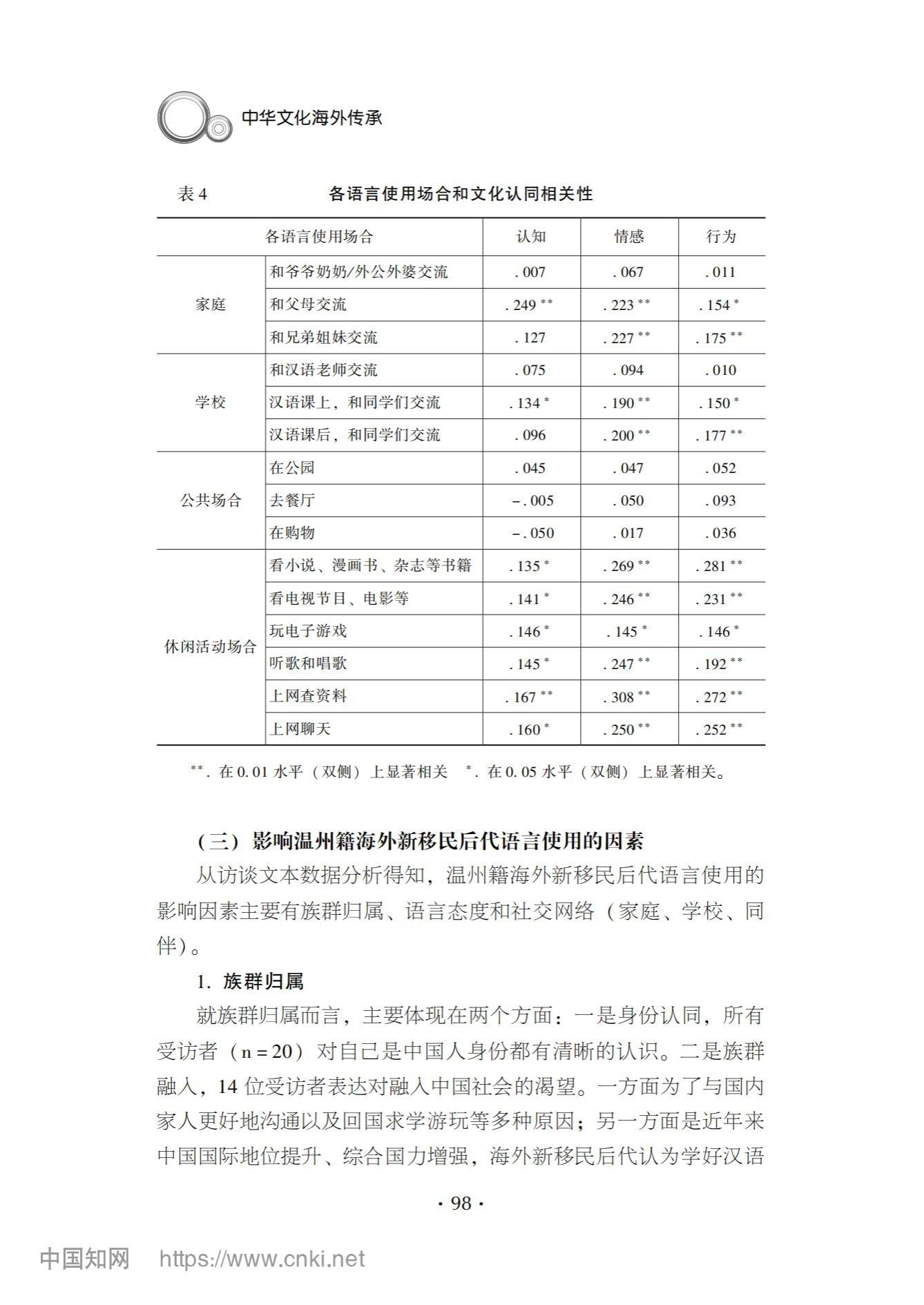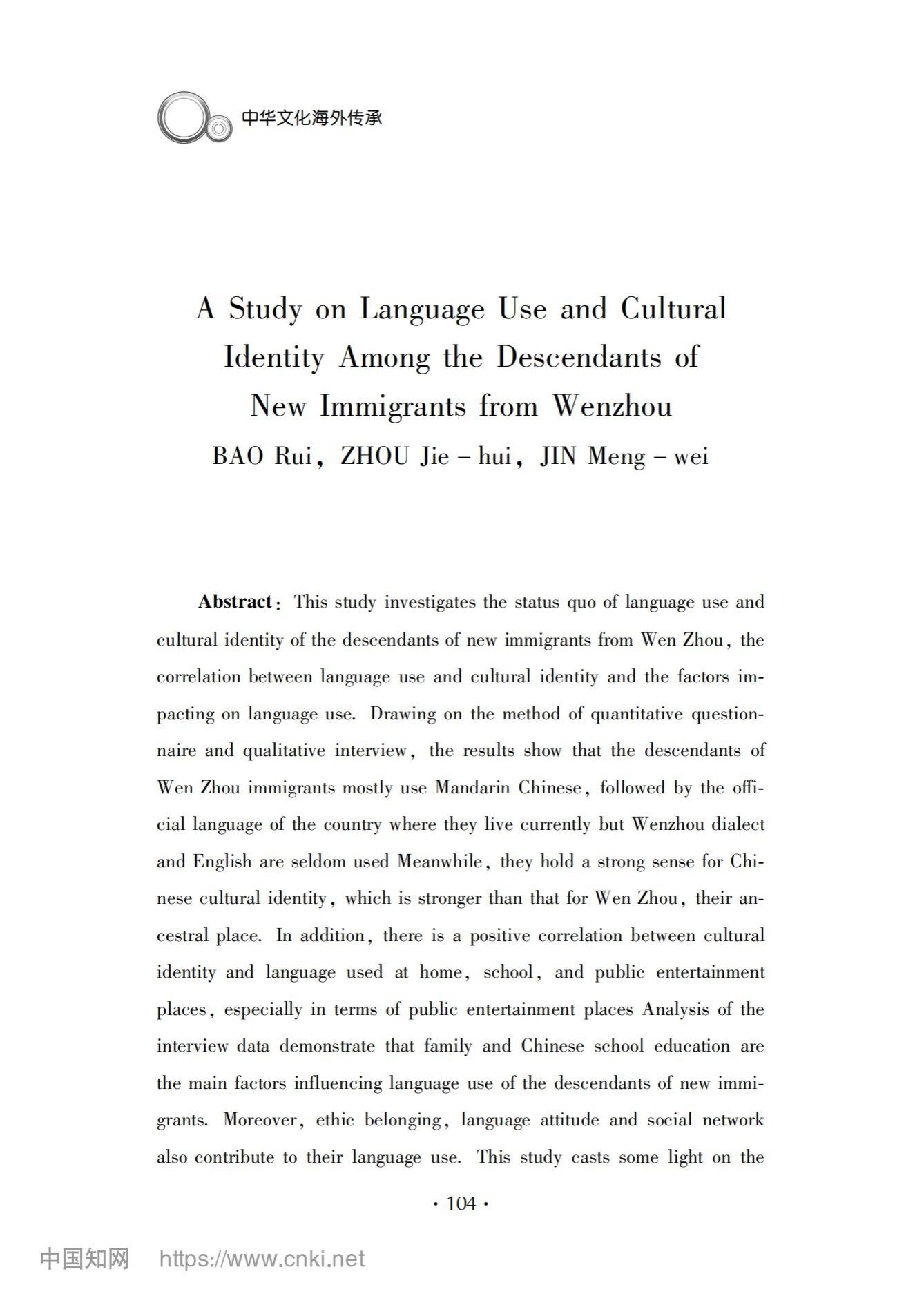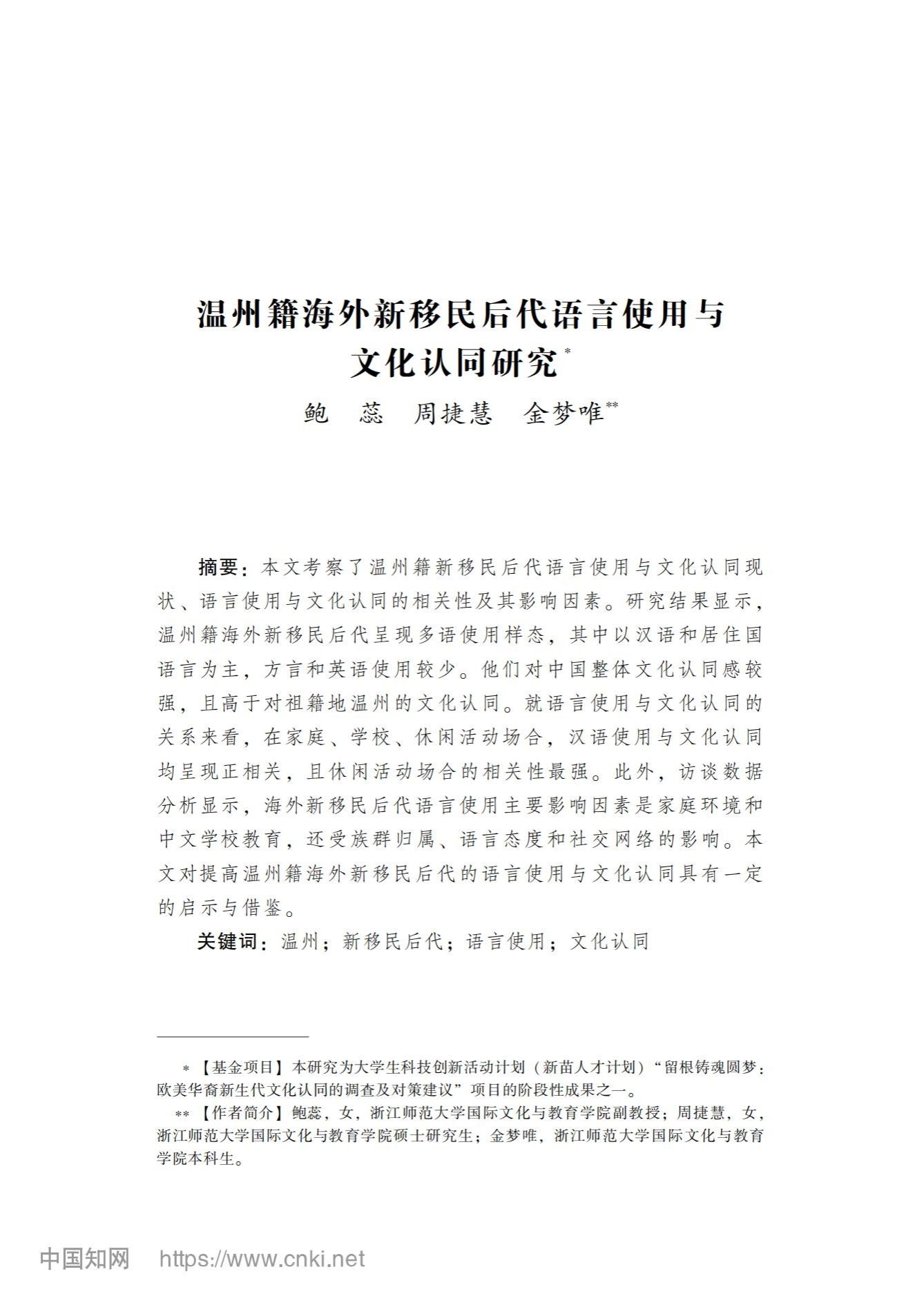 本期《华侨华人学研究》成果分享:鲍蕊、周捷慧、金梦唯《温州籍海外新移民后代语言使用与文化认同研究》