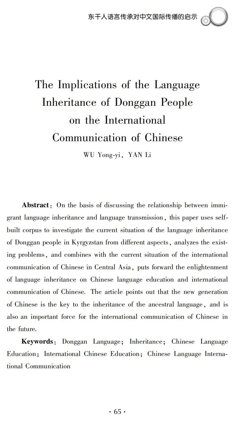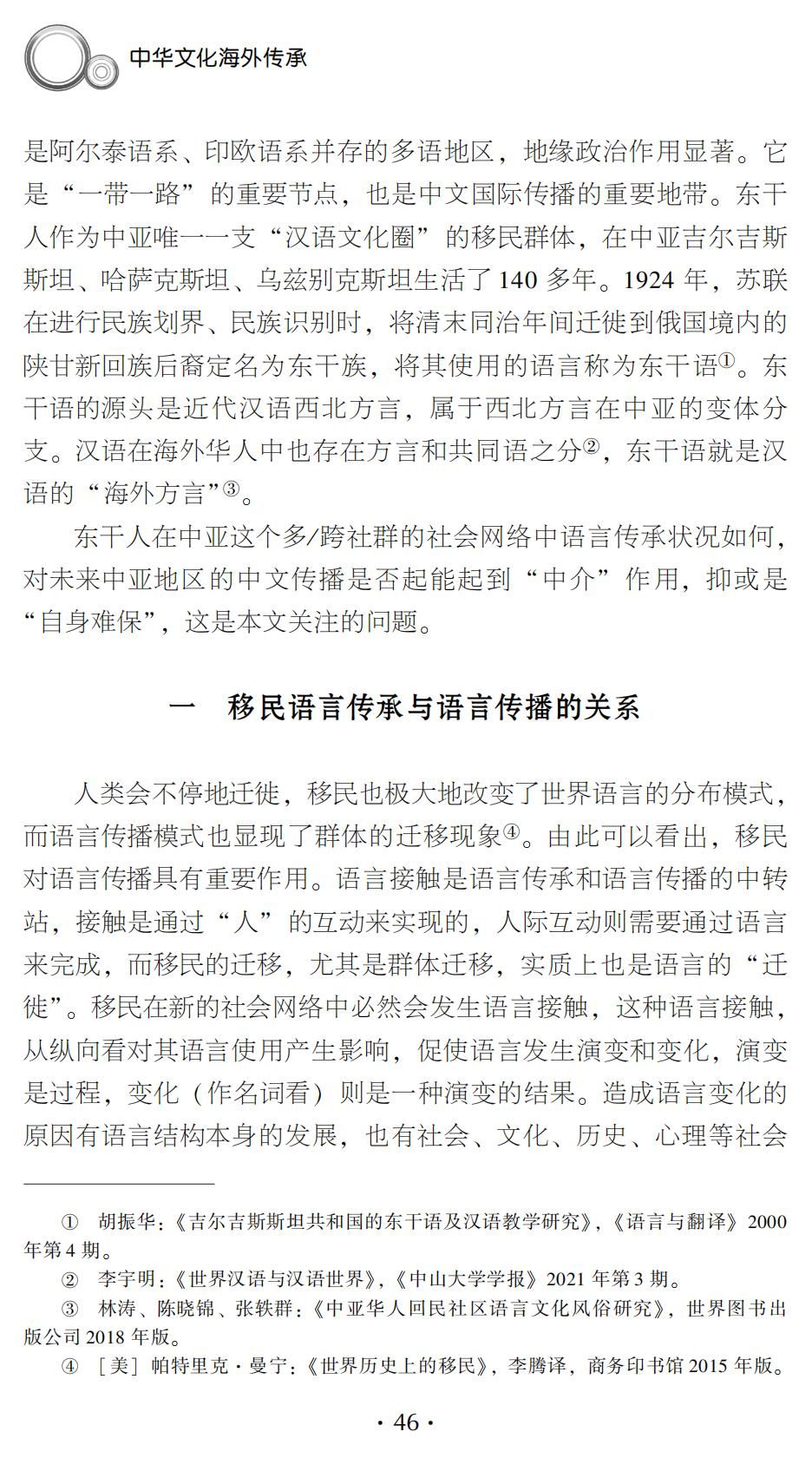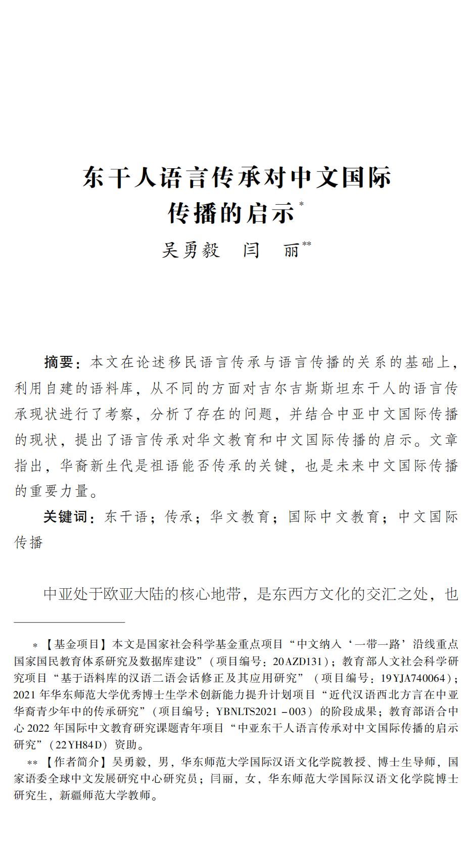 本期《华侨华人学研究》成果分享:吴勇毅、闫丽《东干人语言传承对中文国际传播的启示》。