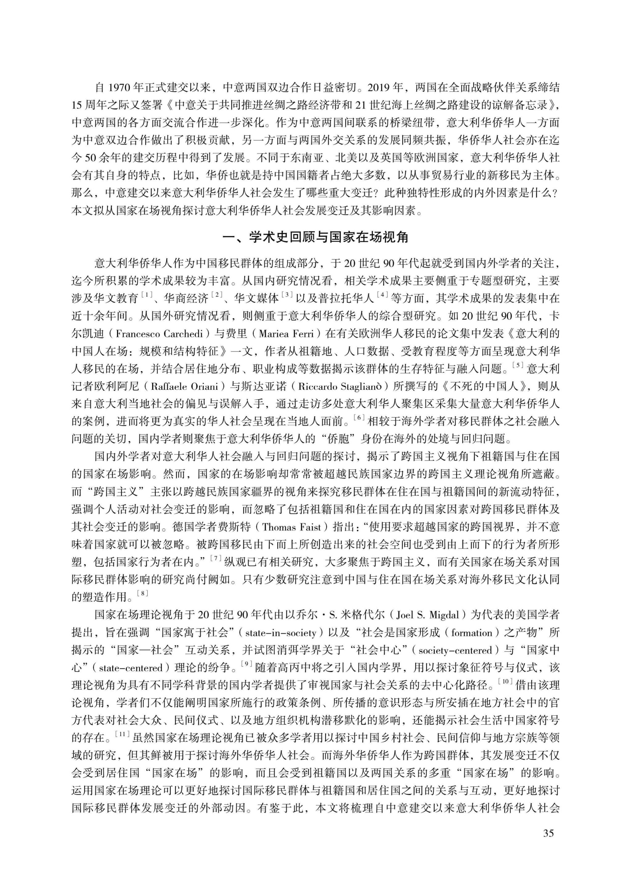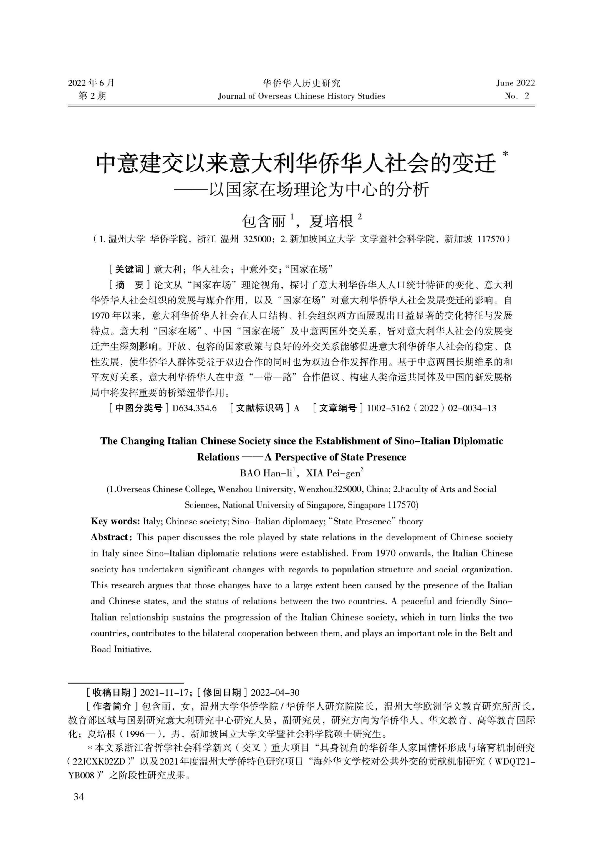 本期侨研究成果分享:包含丽、夏培根《中意建交以来意大利华侨华人社会的变迁——以国家在场理论为中心的分析》。